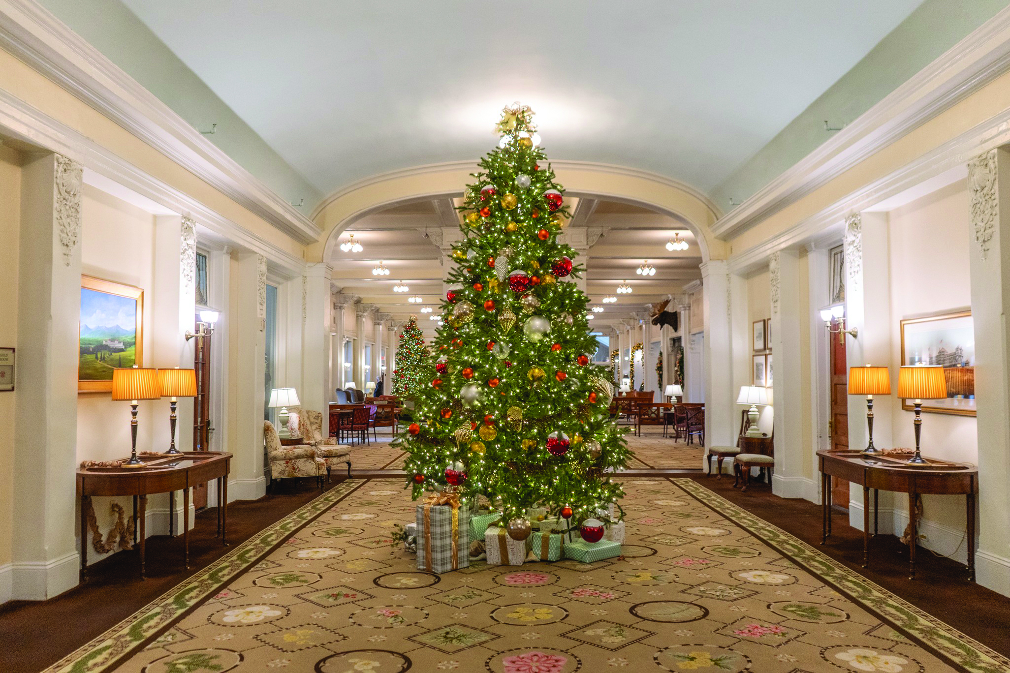 Our our flight takes off for Boston, we’re Dreaming of a White Christmas and the magical journey ahead! We’ll then make our way to New Hampshire, the “Granite State.” Traveling through New Hampshire’s snowy woods, we’ll arrive in the picturesque White Mountain National Forest for three wonderful nights at the stunning Omni Mount Washington Resort in Bretton Woods, NH. Ground was broken on this “only in your dreams resort” in 1900 and construction was completed in 1902. A delightful buffet dinner is served in the resort’s elegant 1902 Main Dining Room this evening. After dinner, perhaps you wish to don your coat, hat, & mittens and take a moonlit stroll on the expansive veranda.