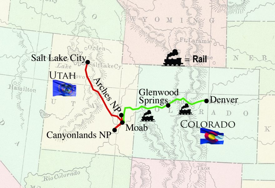 * 2 Days traveling by Rail from Moab, Utah to Denver, Colorado aboard Canyon Spirit in Signature Class - a journey of extraordinary landscapes!